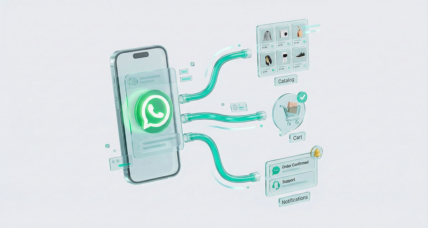Sell and support directly on WhatsApp using catalog, cart, and notifications.